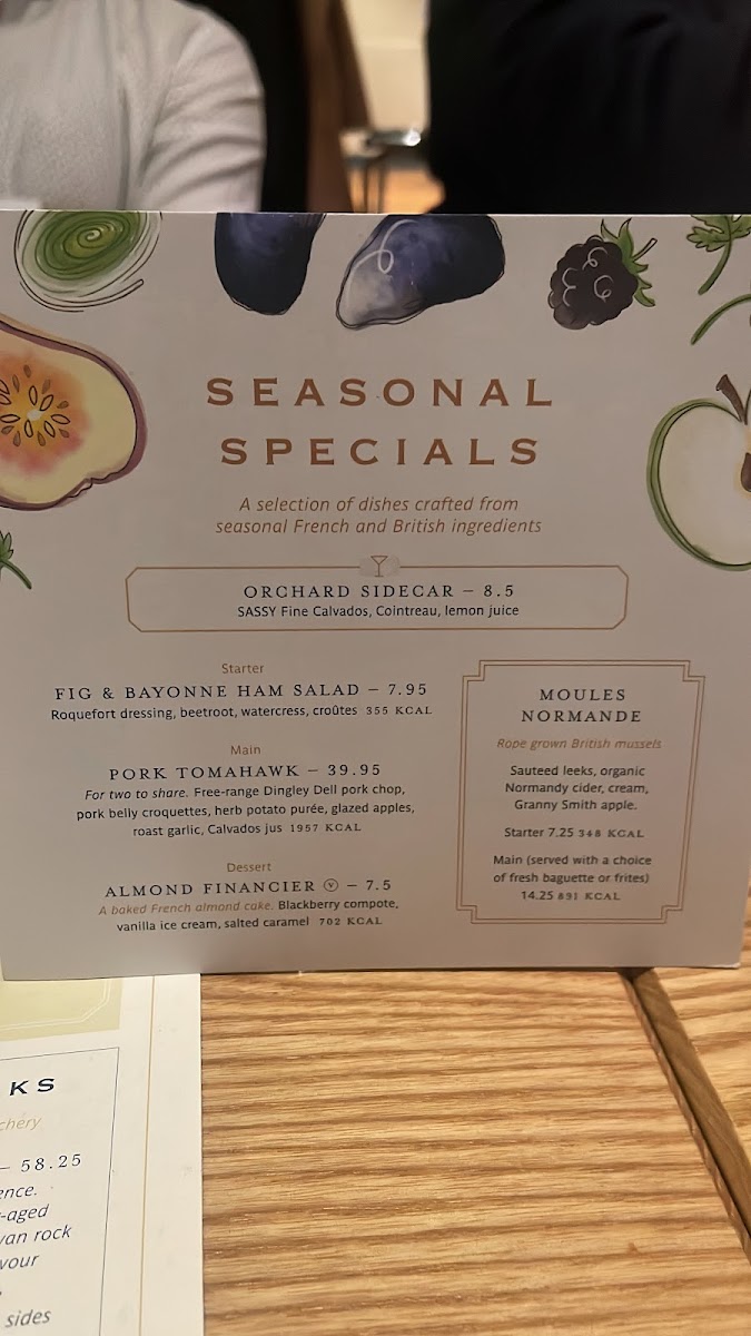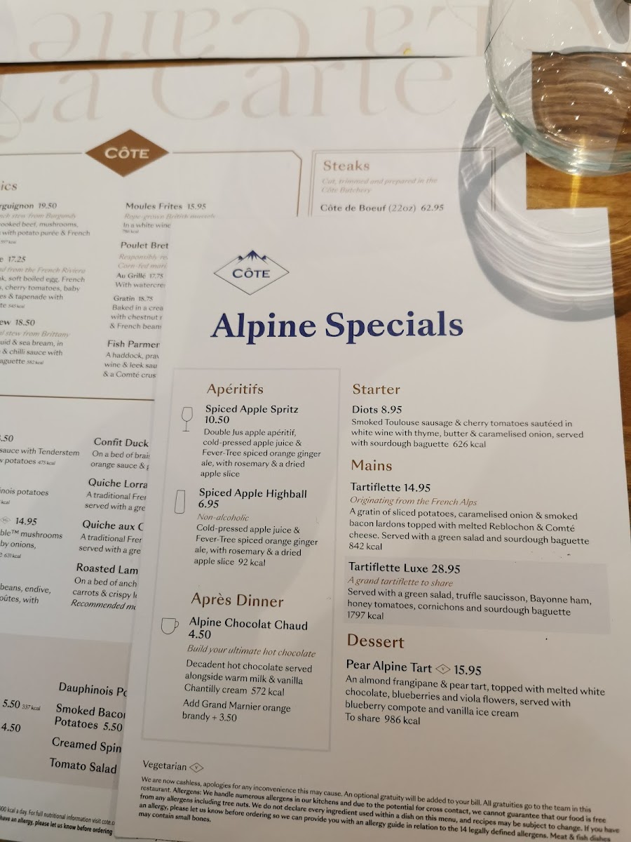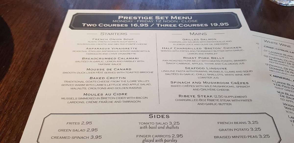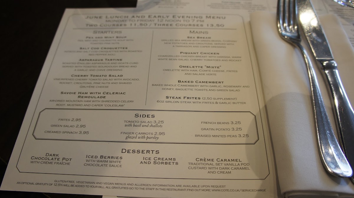 Côte Wimbledon Menu