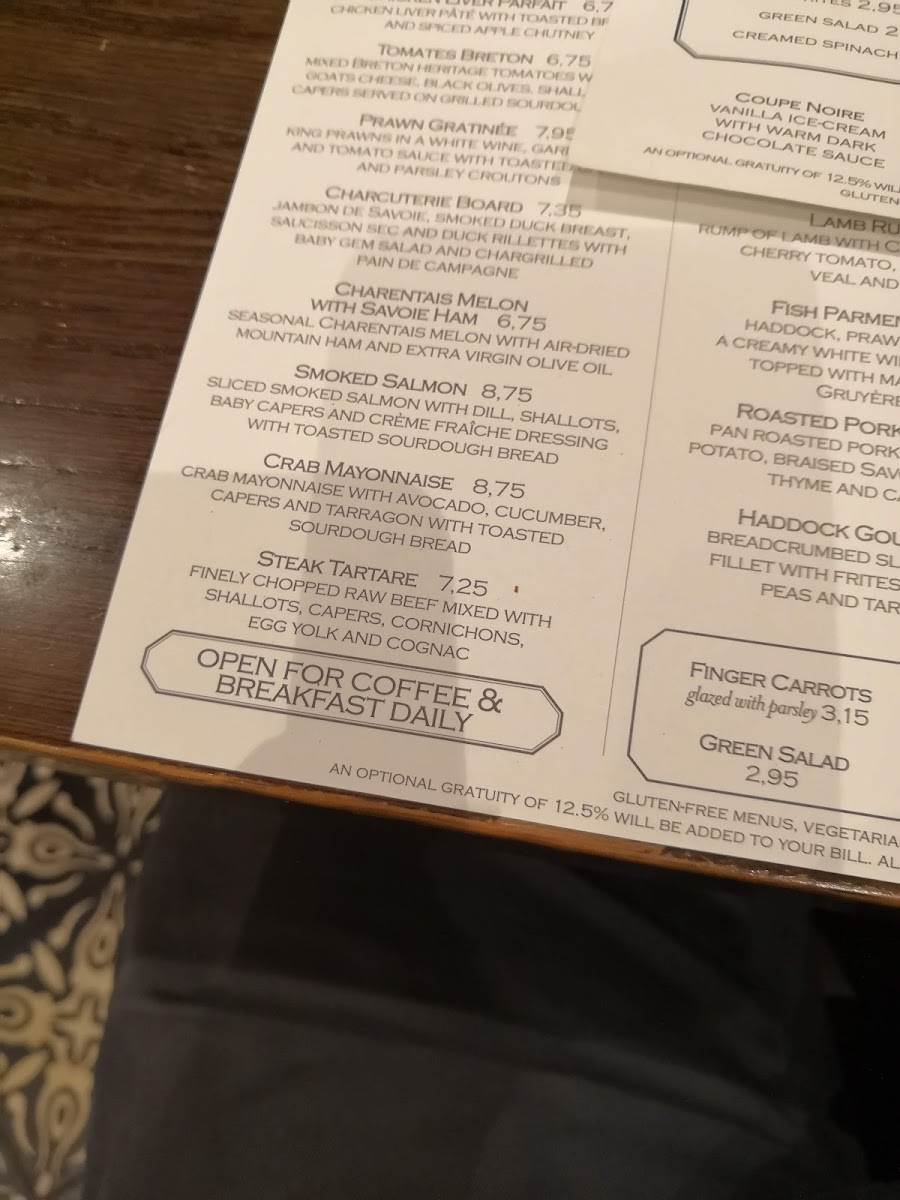 The menu also pays attention to diverse needs and tastes, featuring gluten-free options and vegan alternatives, making it accommodating for a range of guests. Complemented by a selection of carefully crafted drinks—from a Spiced Apple Spritz to a classic French coffee—the overall experience feels unhurried, warm, and grounded in everyday enjoyment.